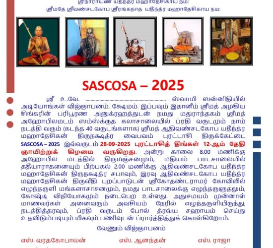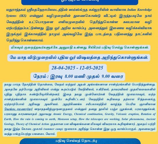 15 Day National Level Textual Workshop in Bhagavad Ramanujacharya’s Vedartha Sangraha