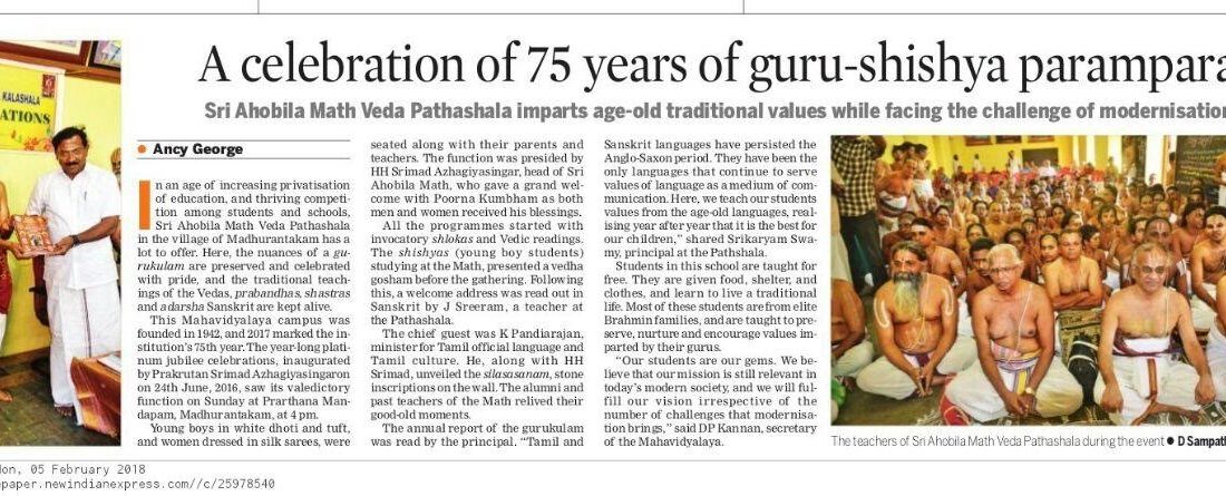31.03.2021 -Sarvari, Phalguni, Swati Acharya Sarvabhauma Srimath Paramahamsethyadhi brudhalankara His Holiness Srimathe Srivan Sathakopa Sri Ranganatha Yatindra Mahadesikan (the 46th Srimad Azhagiyasingar of Sri Ahobila Math) has inaugurated with His divine hands a Website for Sri Ahobila Math Veda Prabandha Sastra Adarsh Samskruta Mahavidyalaya, Madurantakam on 31-March-2021...Read More