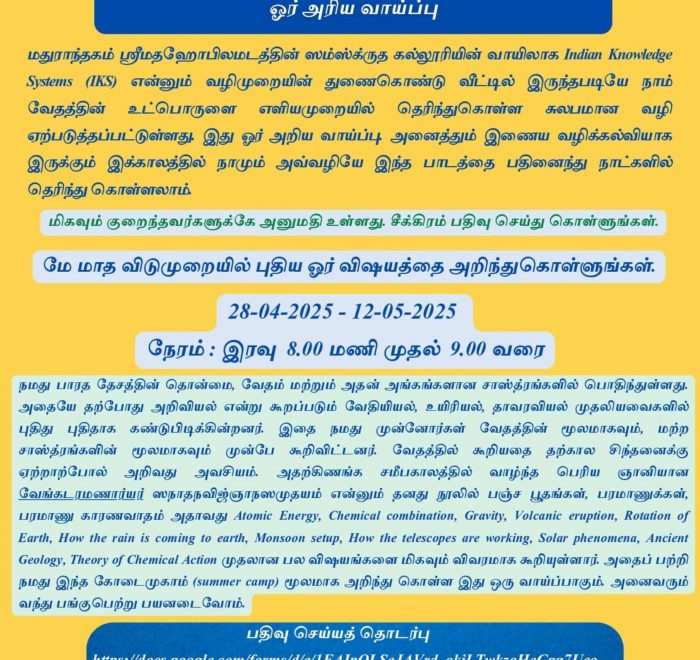 ஸநாதந பௌதிக விஜ்ஞாநம் பற்றி அறிந்து கொள்ள ஓர் அரிய வாய்ப்பு